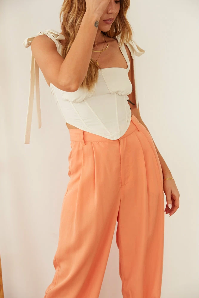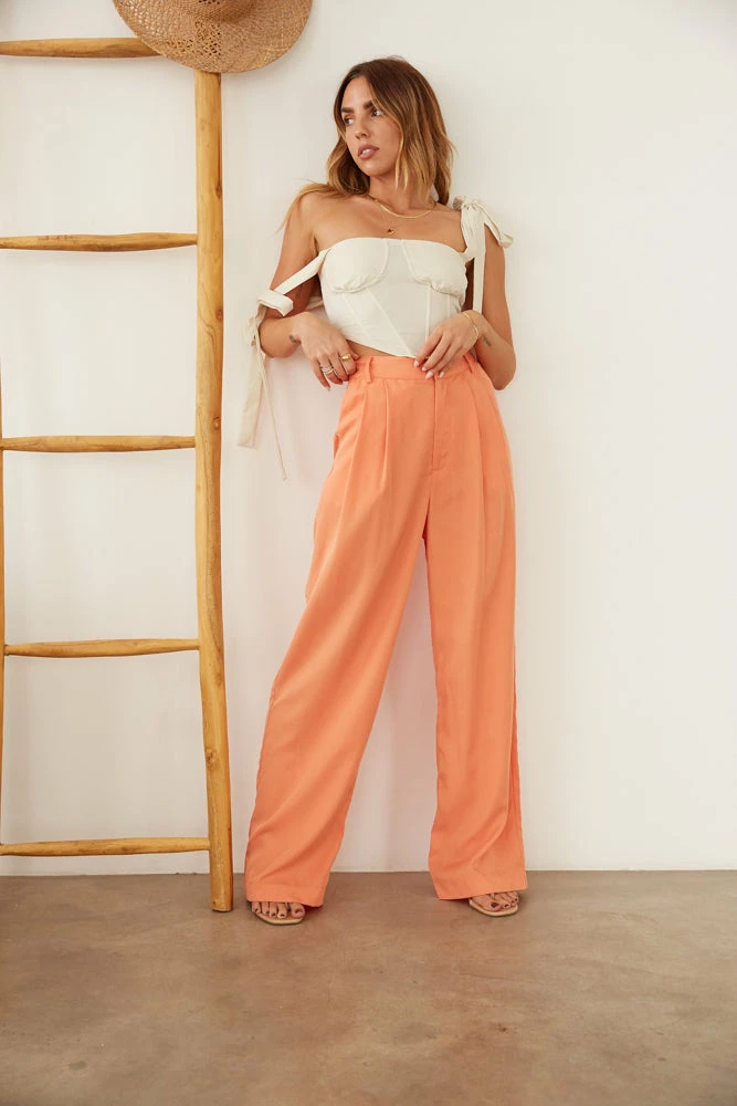 Hey babe, meet the Andie Wide Leg Trouser Pants! These trendy trousers are a wardrobe staple featuring a high rise fit, pleated detailing, and a full length wide leg for a relaxed silhouette. Available in papaya orange. Pair with the Vienna Crop Top to complete this flirty look!
