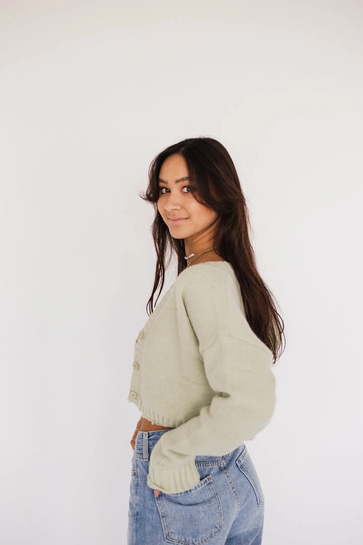 Picture perfect in the Birdie Knit Crop Cardigan Set! This look is complete with a knit tube top and a long sleeve cropped cardigan to match. Available in cream and sage green. Pair this look with the Wilma Pearl and Gold Chain Necklace for an elegant finish!