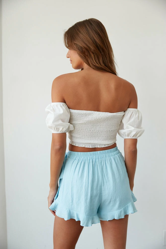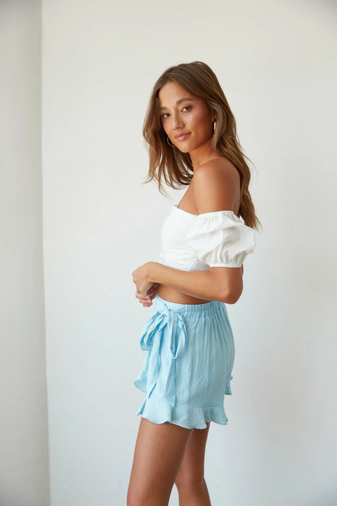 Hey dream babe, make any outfit the perfect summer vibe in our Celeste Ruffle Wrap Skort! Featuring a high rise fit, adjustable side tie detail, and a cute ruffle hem. Style with a cute top to complete this summer look.