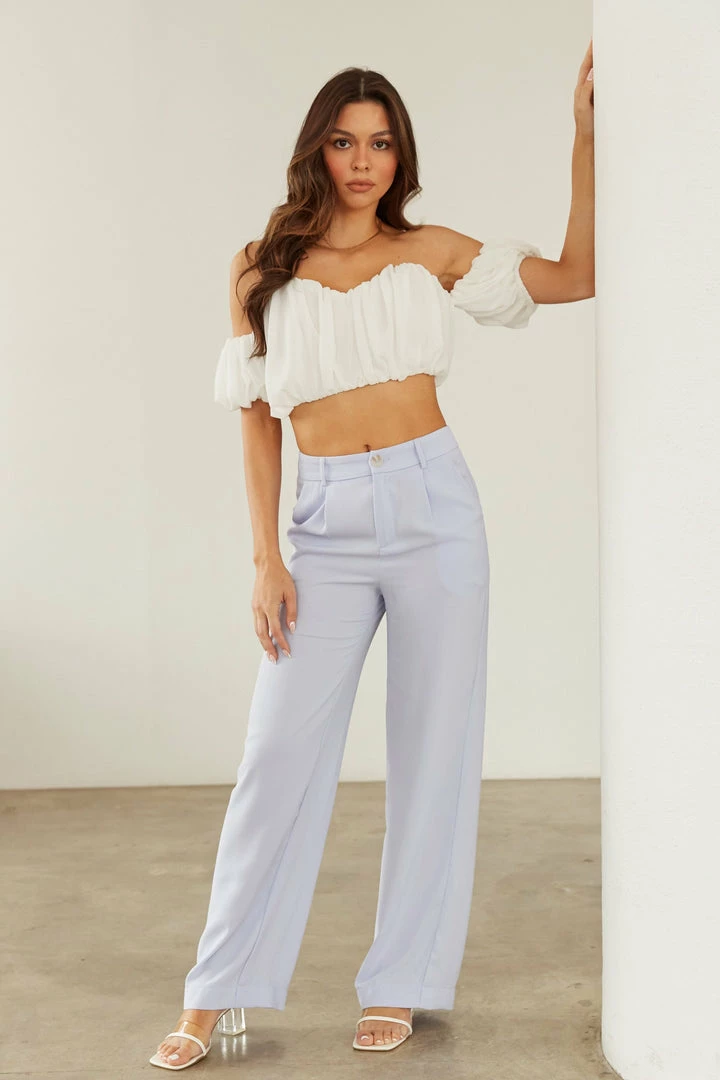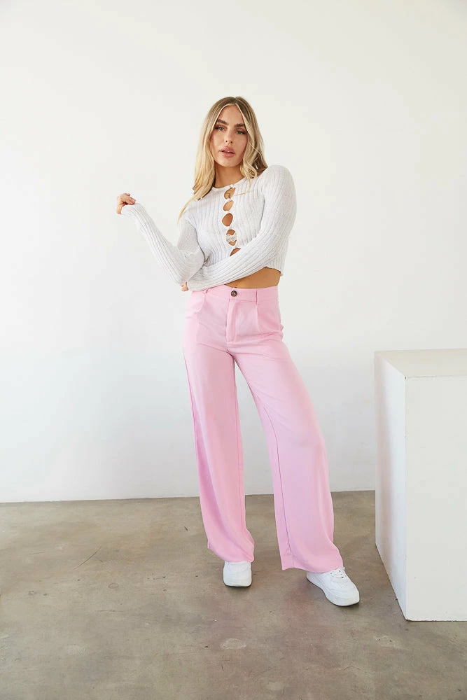 Hey babe, meet our Clover Wide Leg Trouser Pants! These trendy trousers are a wardrobe staple featuring a high rise fit, pleated detailing, and a full length wide leg for a relaxed silhouette. Available in periwinkle, ecru, black, white, hot pink, pistachio green, and bubblegum pink. Pair with a corset top for a feminine touch!