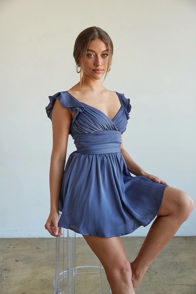 Feeling femme in the Desiree Ruffle Mini Dress! This charming piece features a wrap sweetheart neckline, a tie detail at the waist, and a flouncy hem to complete this flowy silhouette. Top this dreamy look off with the Five and Two Rogue Necklace for the perfect summer look!