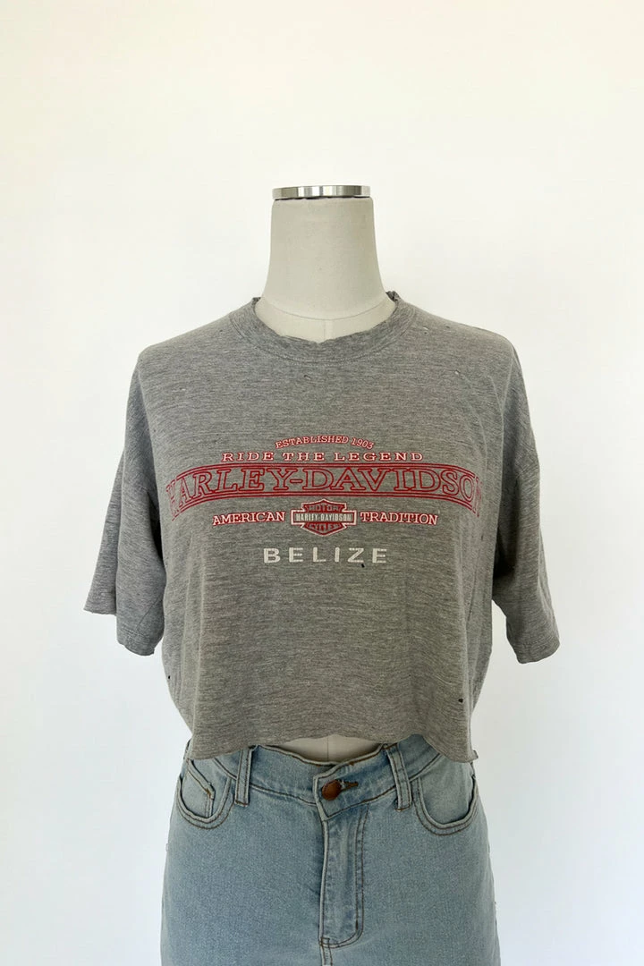Hey babe, your lounge collection needs a vintage Harley tee! The Harley Davidson Belize Tee featuresĀ a boxy cropped silhouette, faded red front graphic, and distressed detailing throughout.