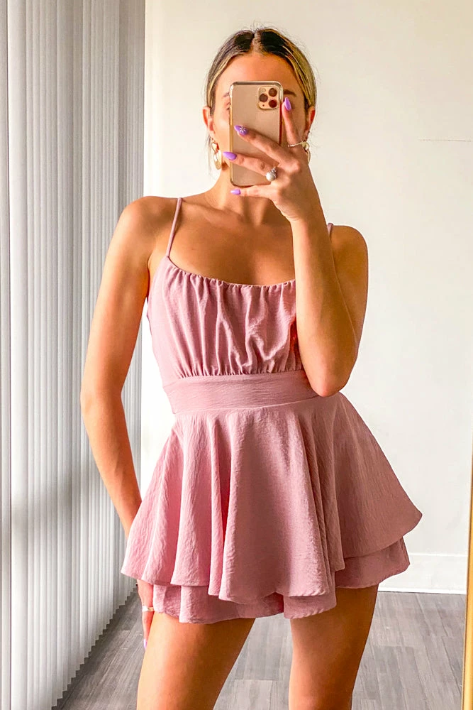 Hey babe, here’s the perfect outfit for your next big event! The Jessie Ruffle Romper features an adjustable back tie detail, a ruched bust, and a tiered ruffle skirt for a flirty finish! Available in rose pink and white. Style this with the Yarra Strappy Block Heel to complete the look!