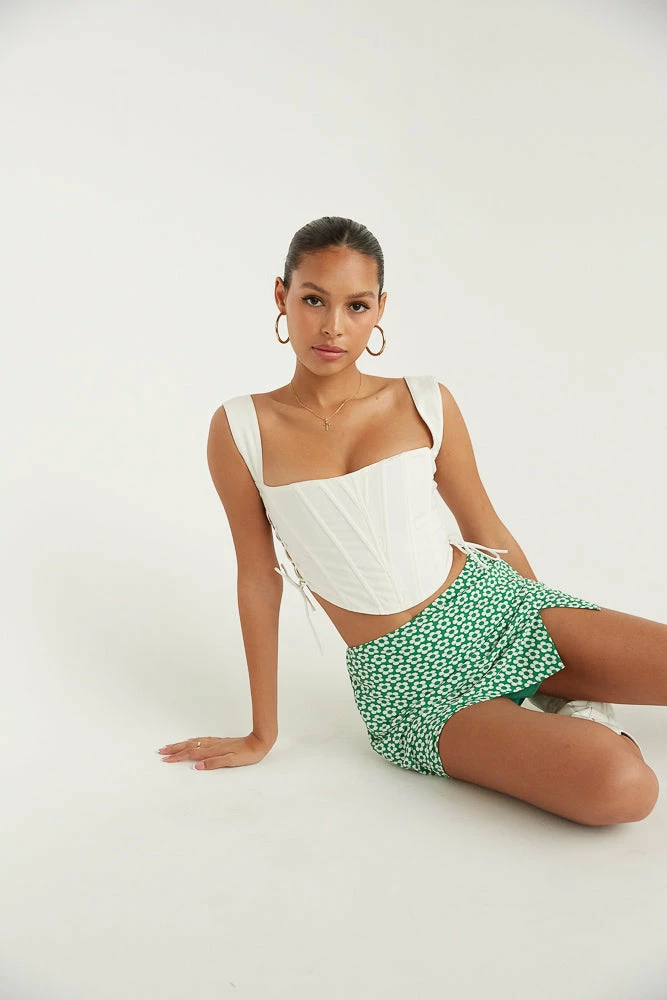 Make a scene in the Kiko Corset Crop Top! Featuring a square neckline, a curved hem, lace up sides for a glimpse of skin, and inner boning for a corset look. Available in black and white. Pair with some denim for the ultimate summer look!