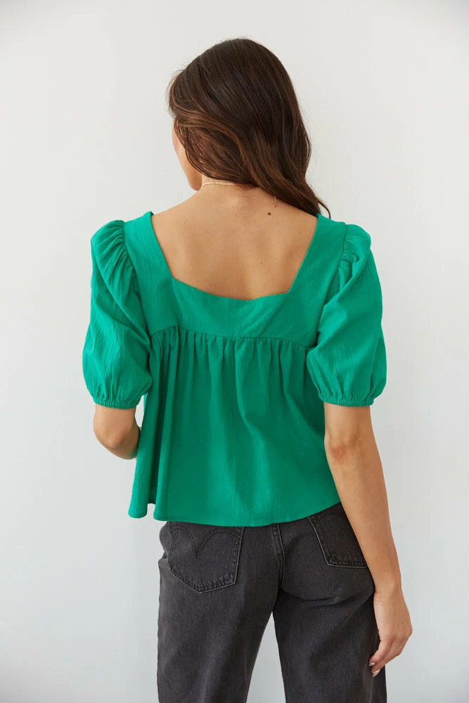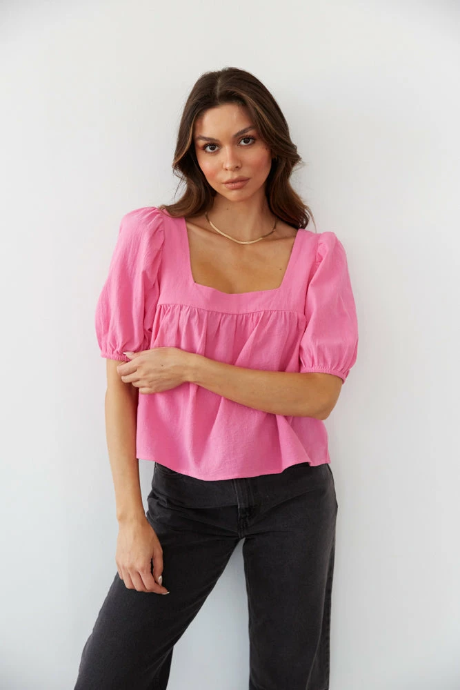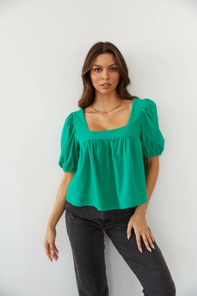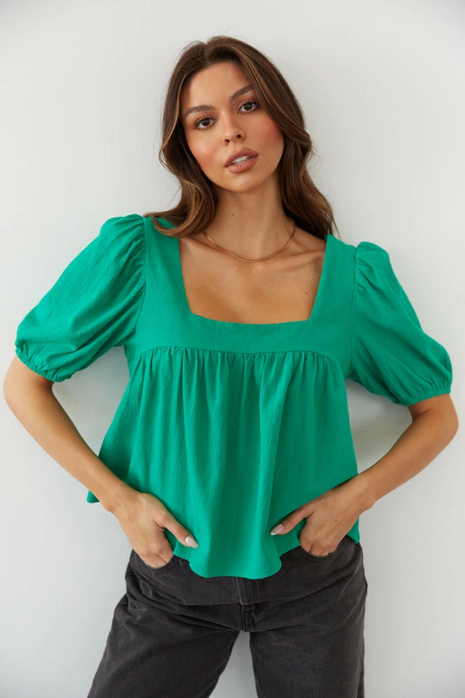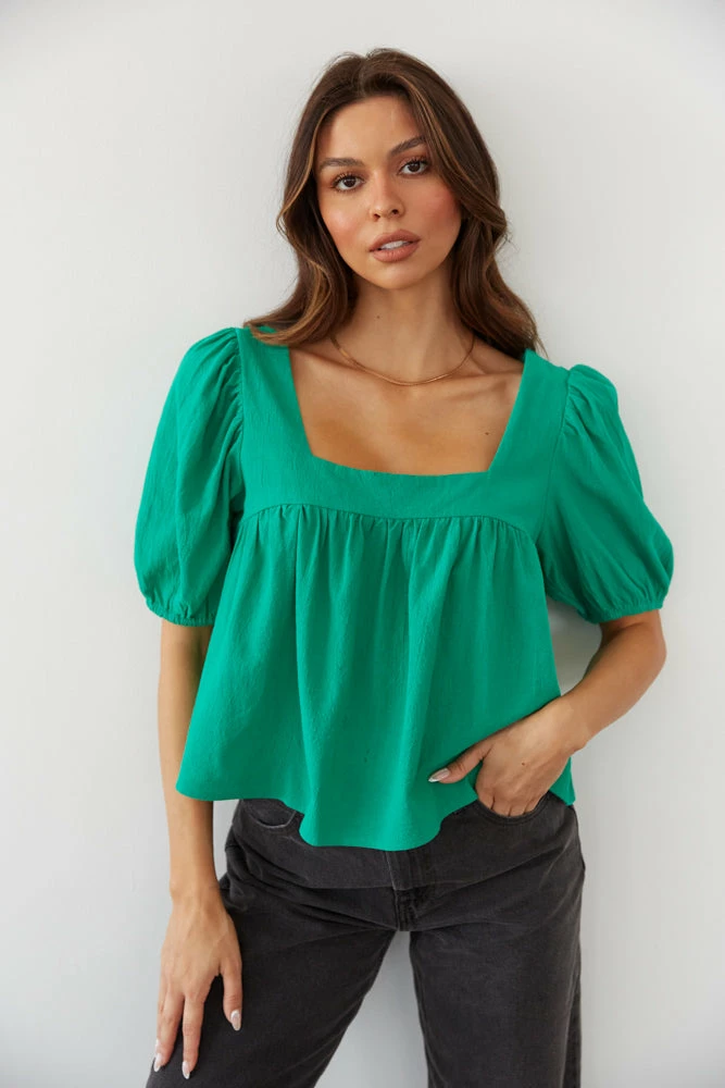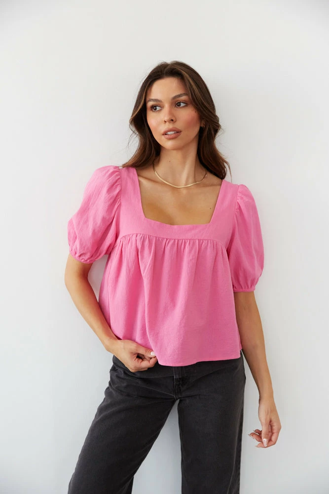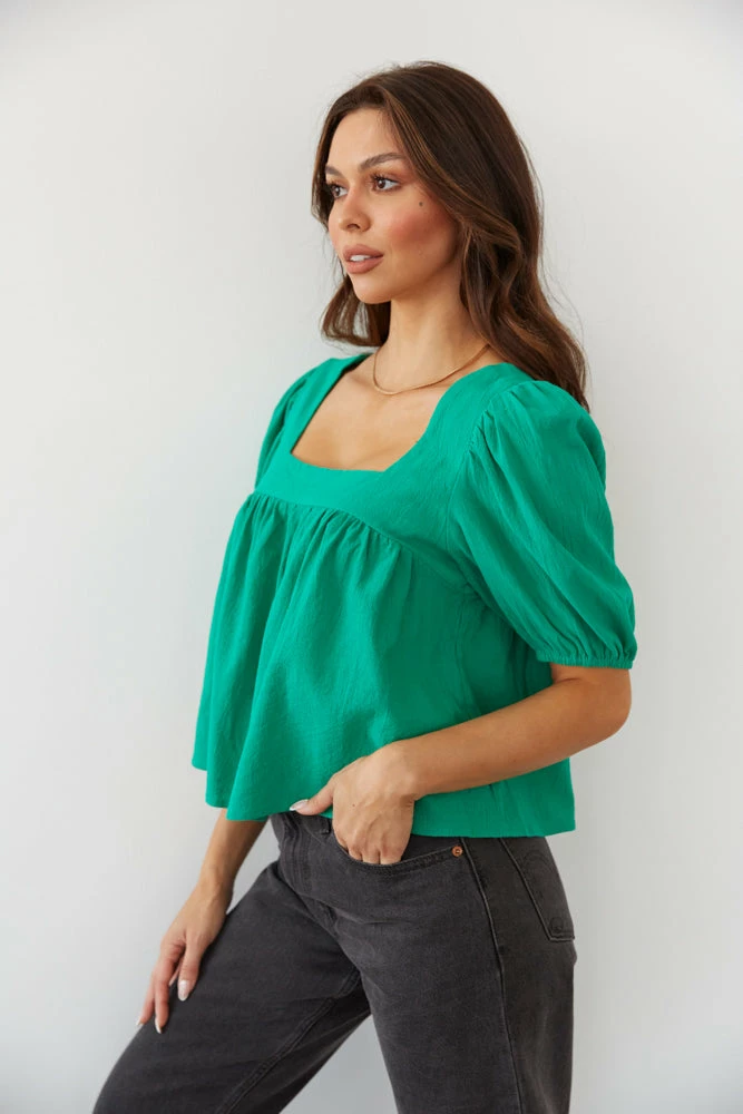 Feeling fresh in the Lotus Puff Sleeve Top! This flowy top features a square neckline, ruching around the bust, and short puffed sleeves. Available in kelly green and pink. Pair with the Levi’s Wedgie Straight Jeans in Black to complete the look.