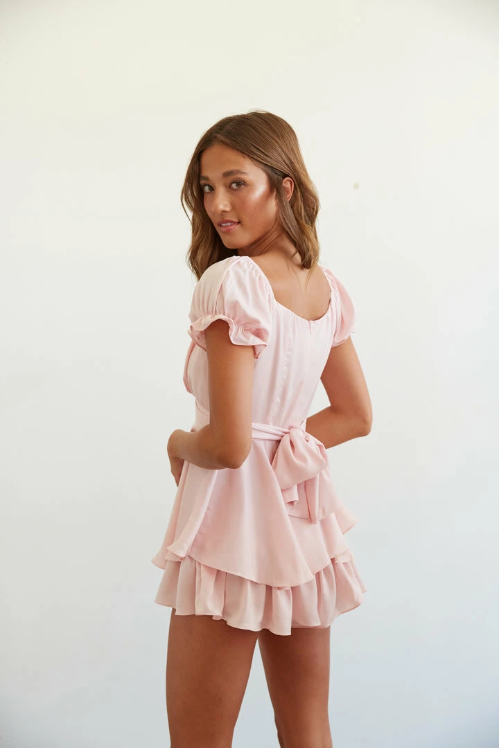 Hey babe, you look good in blue! Our signature Eleanor Ruffle Wrap Romper features a sweetheart neckline with a ruched bust, an adjustable wrap tie, short ruffle trim puff sleeves that can be worn on or off the shoulder, and a dreamy tiered ruffle skirt for a femme final touch. Also available in blush pink, white, lavender, coral pink, and yellow. Style with the Jeana Block Heel to complete this dreamy look.