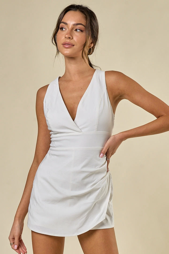 Fall in love with the Paradise Cove Wrap Romper! Featuring a v neckline, a tulip skort, and an open back with an adjustable tie detail. Also available in blue. Wear this to your next brunch or graduation with the Ukari Clear Block Heel.