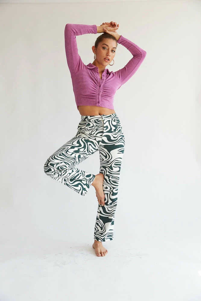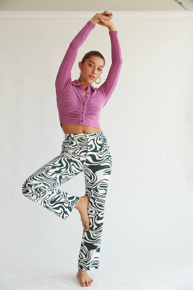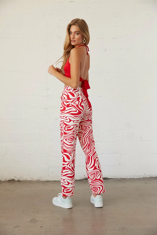 Feeling bold? Throw on the Ramona Wavy Straight Leg Jeans to make a statement! Featuring a high rise fit, a relaxed straight leg, and a retro wavy print for the ultimate cool girl vibe! Available in teal, red or blue. Top off your look with a trendy nylon bag!