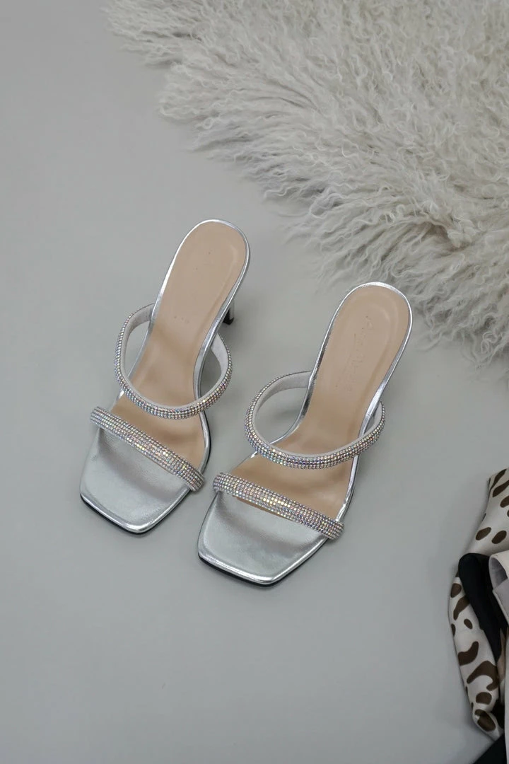 Hey babe, the Darby Rhinestone Double Strap Heel in Silver is the perfect pair of heels to go with any night-time look. Featuring a rhinestone strap detailing, these heels will surely elevate any look and would be perfect for the summer time. Available in Silver. Pair with our Karolina Ruched Mini Dress in Black