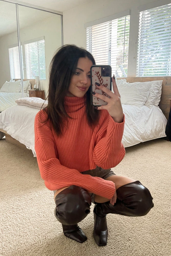 Have some fun in the Balboa Turtleneck Sweater! Featuring a cozy turtleneck, dropped shoulders for a relaxed fit, and a super soft ribbed knit design. Available in orange. Pair this crop with printed bottoms for a fun + cute look!