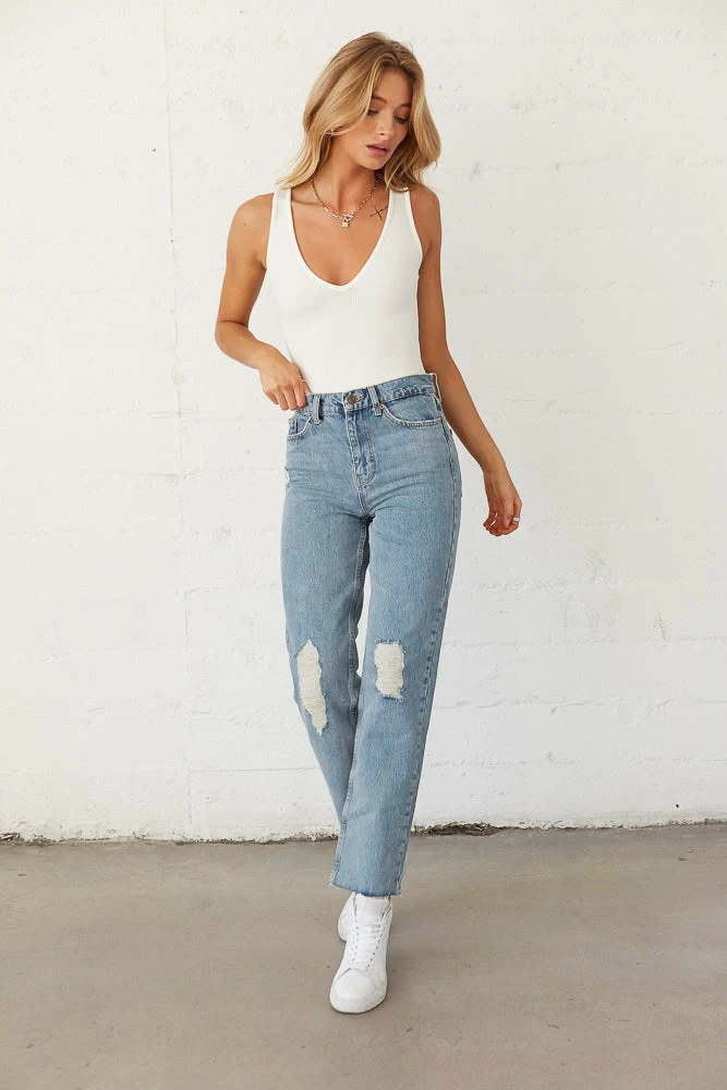The Pax Destroyed Jeans In Vintage Wash by BDG are for the denim dreamers! These essential jeans are complete with a relaxed straight silhouette, distressed detailing throughout, and a high rise fit. Available in a medium vintage wash denim. Style with our Heather Ribbed V Neck Bodysuit for a model-off-duty vibe!
