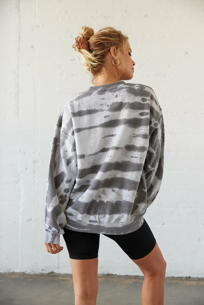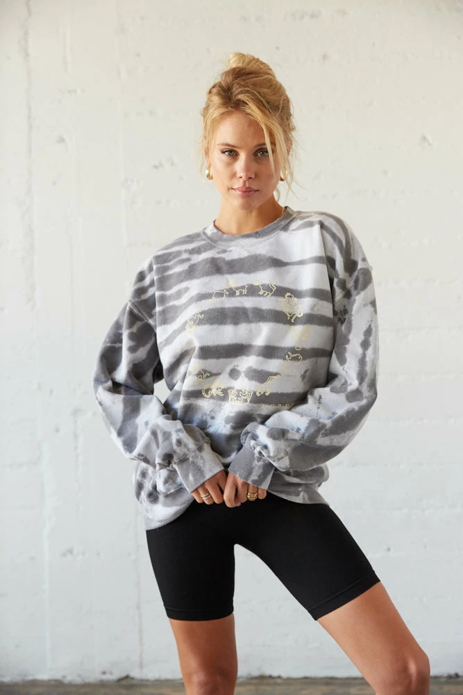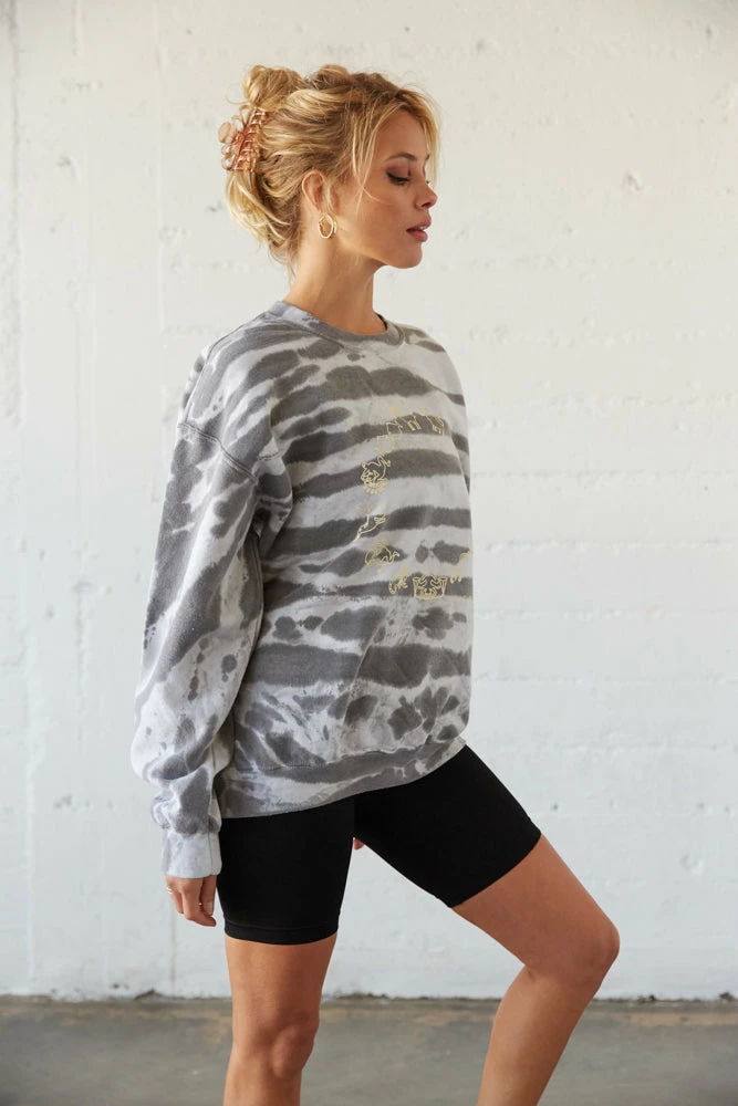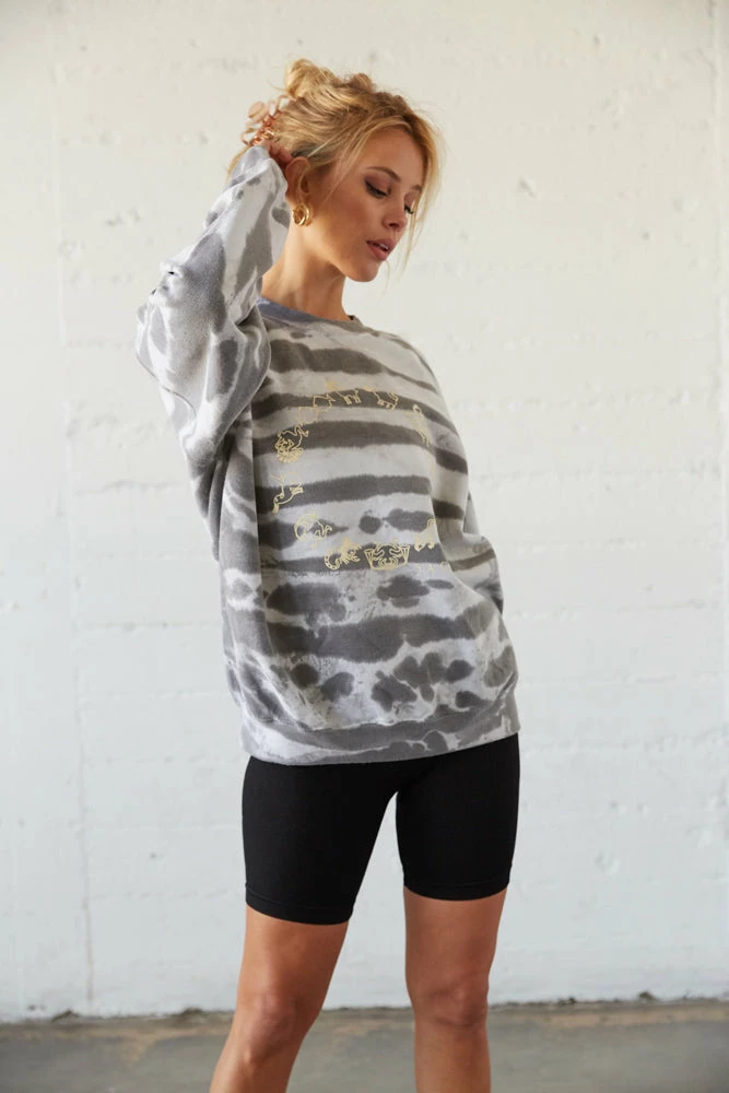 It was written in the stars! The Sacred Tie Dye Crewneck Sweatshirt from BDG is complete with a relaxed silhouette and a gold astrological graphic design. Available in a grey and charcoal bleached tie dye design for a tiger stripe look. Pair this adorable zodiac sweatshirt with our Easy Ribbed Biker Shorts In Black for a cozy weekend vibe!