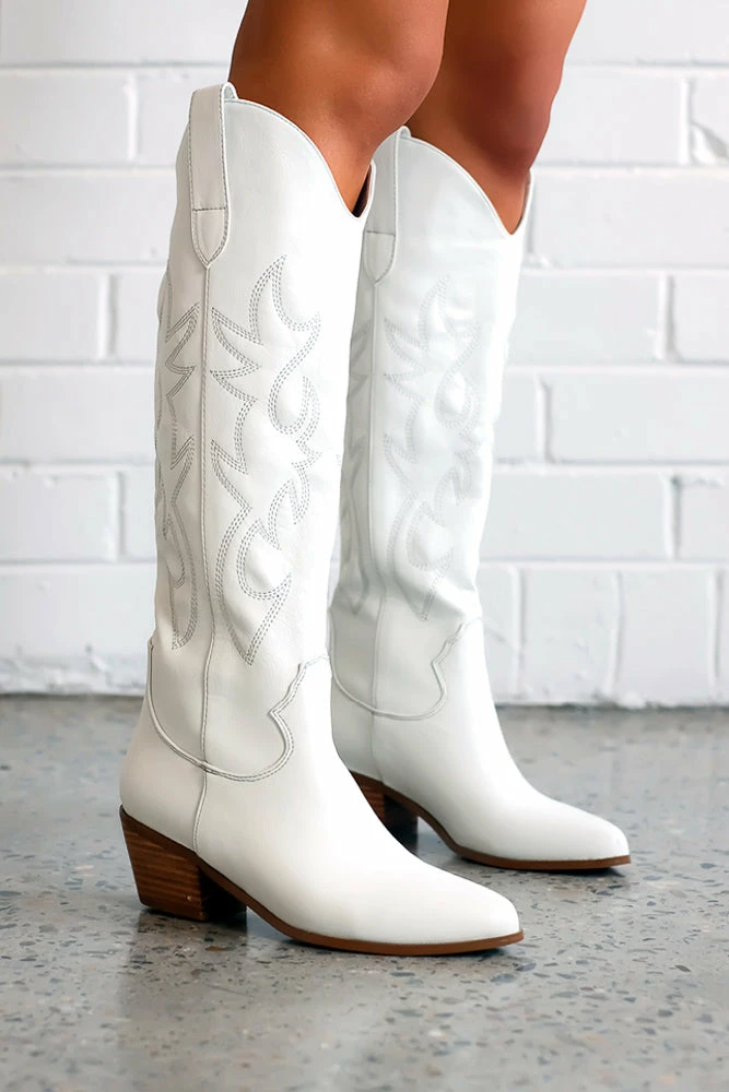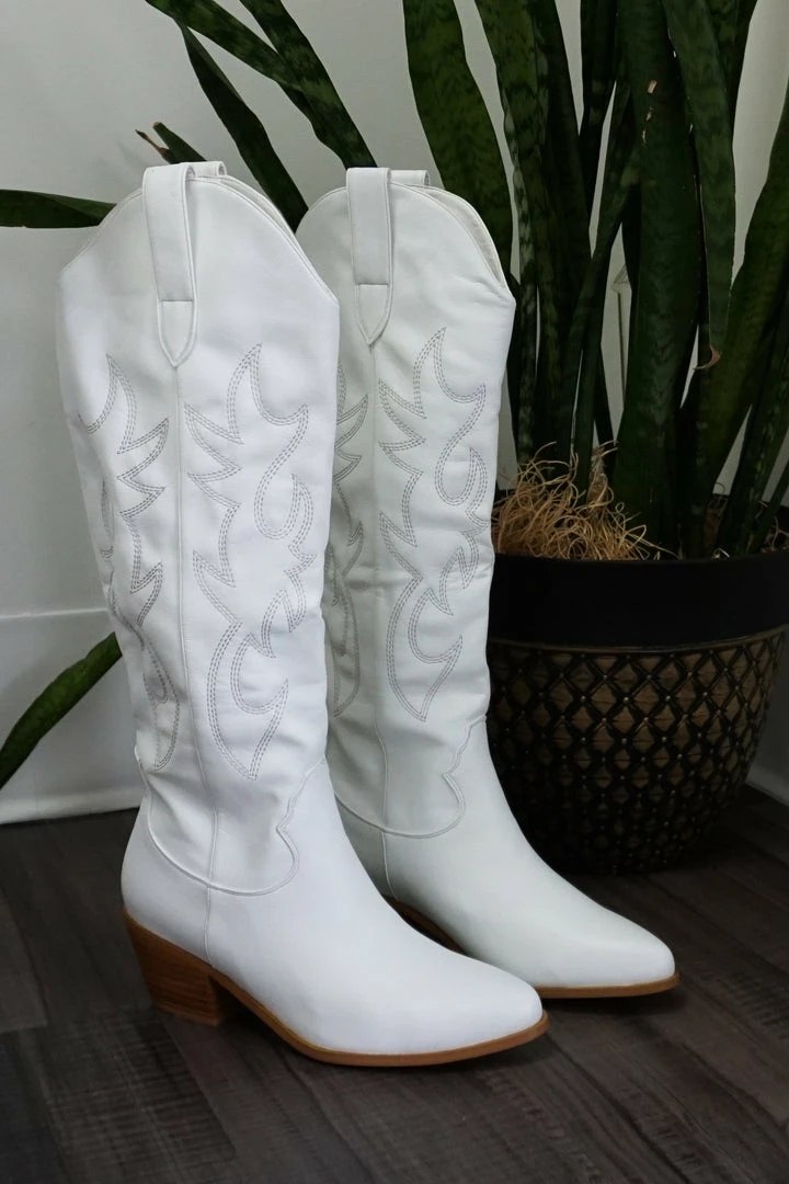 Urson by Billini is a long, western inspired boot. Stand out from the crowd with this statement long boot. Available in White. Pair with a cute dress for a fun cowgirl look!