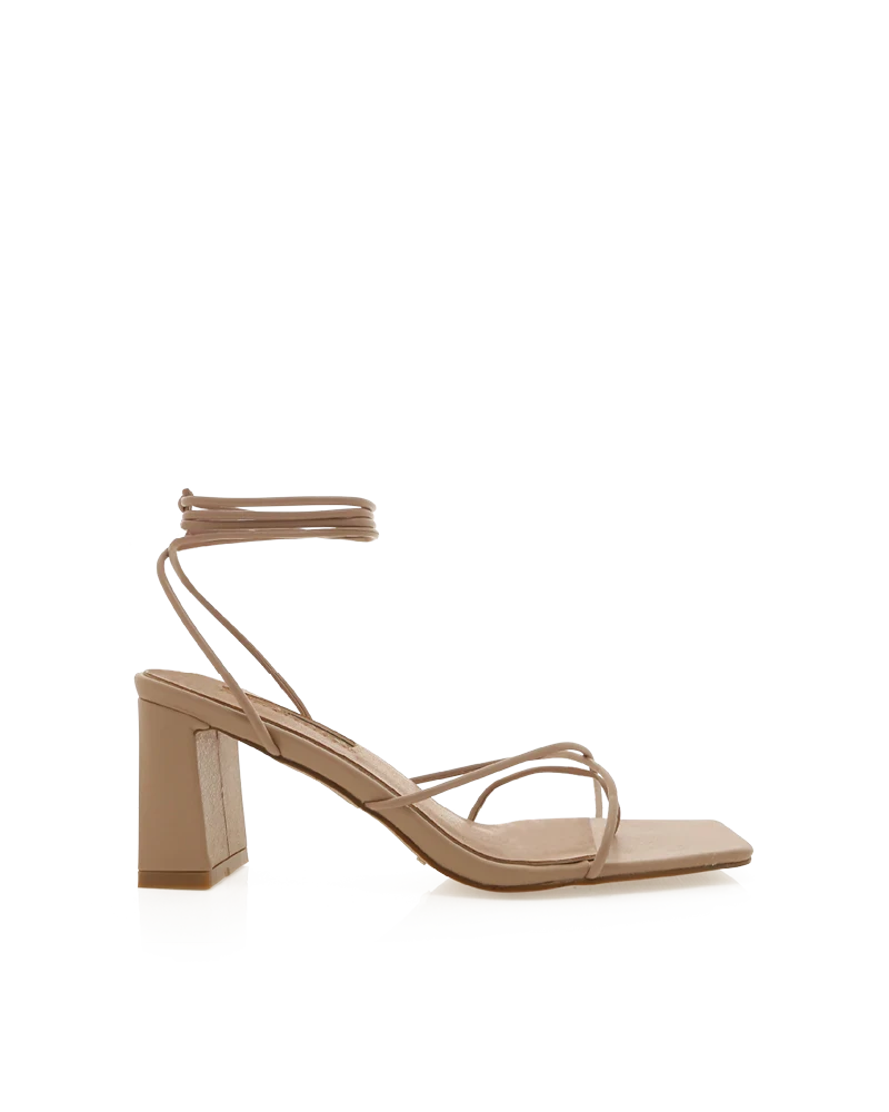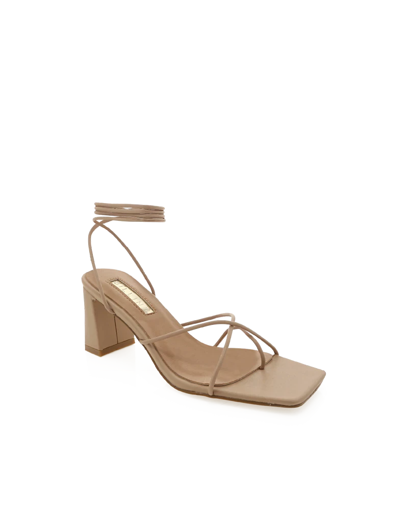 Turn heads in the Issa Strappy Block Heel by Billini! This understated classic features ankle wrap straps with tie closure and an open square toe for the ultimate occasion wear. Pair these with the Colette Floral Skirt Set for a show-stopping look. Also available in white.