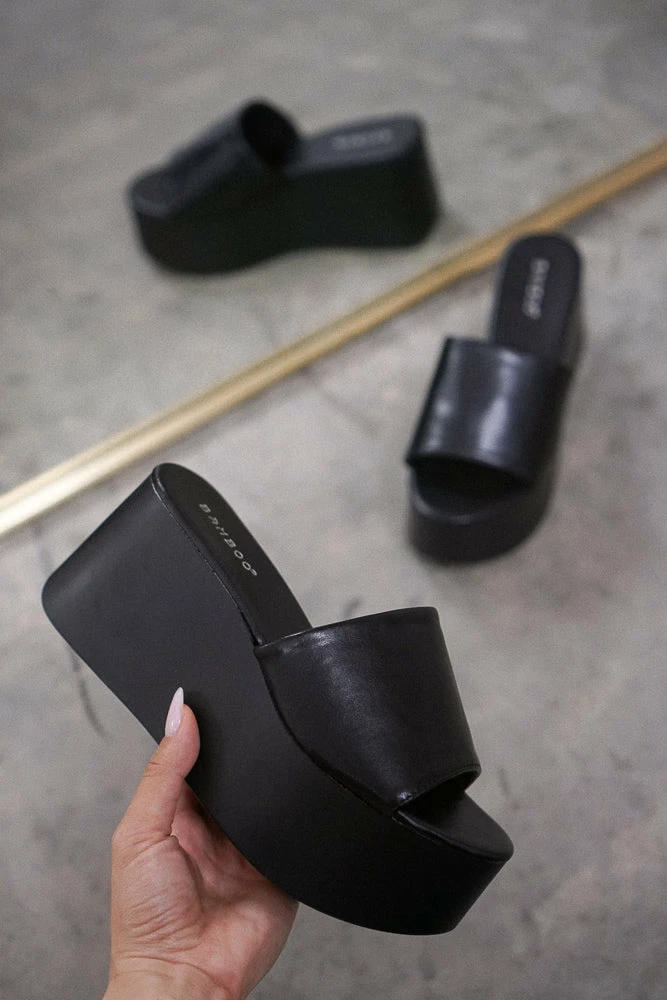 The Britney Flatform Slip On is the perfect pair for all your Y2K inspired looks!Ā Featuring a thick platform sole, slip on construction, and a comfy lightweight feel. Available inĀ black vegan leather. Pair with the Brooke Knit Halter TopĀ for the ultimate 00s aesthetic. Perfect shoes for Coachella, concerts, parties and just for any spring & summer day!