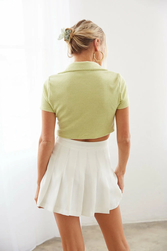 Hey flirty babe! Ride on the ’90s trend with the Diana Mini Pleated Tennis Skirt. This adorable mini features a flirty pleated silhouette, a high rise fit, and built in shorts for a seamless fit! Available in white.Â
