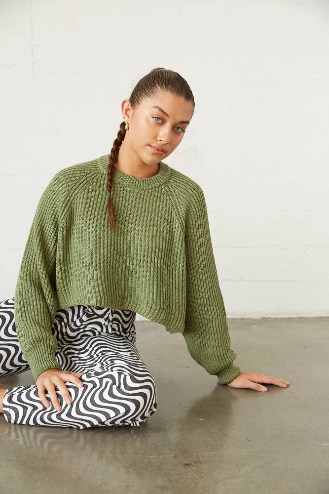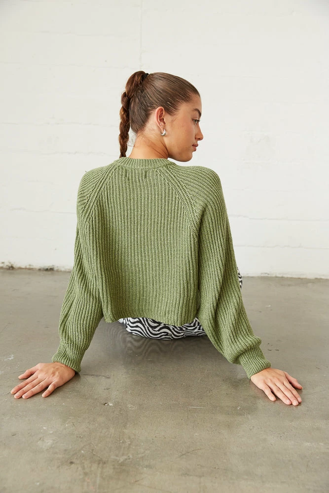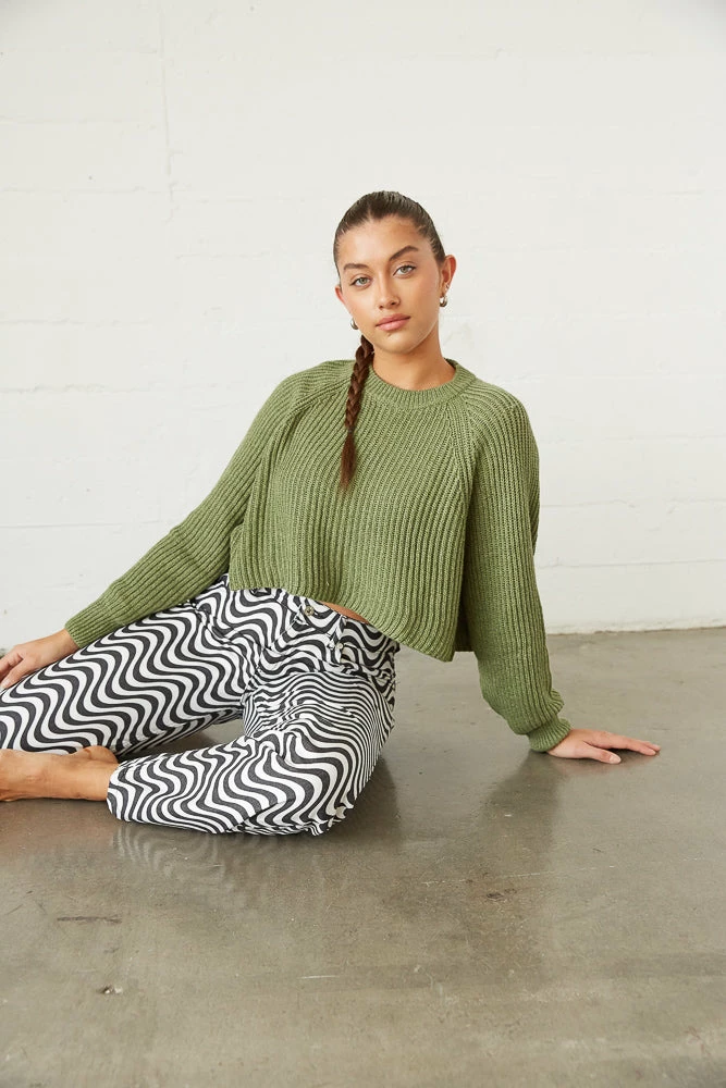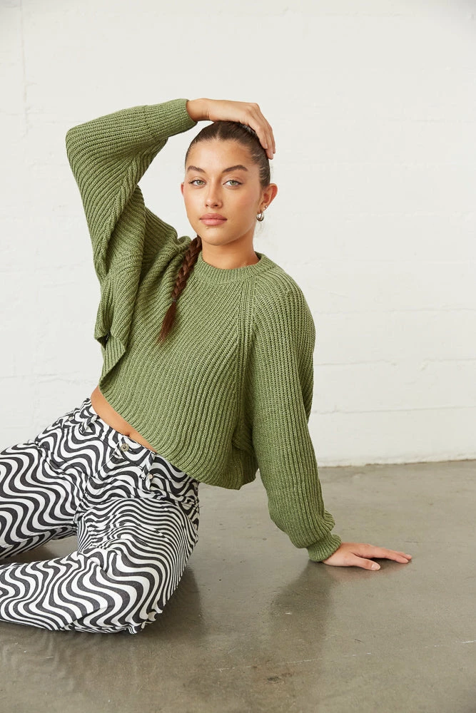 Cozy on up in the Leanna Knit Sweater! Featuring a crew neckline, a soft knitted design, and a relaxed drop shoulder design. Available in green. Pair with the Kegan Straight Leg Checkered Jeans for a funky touch!