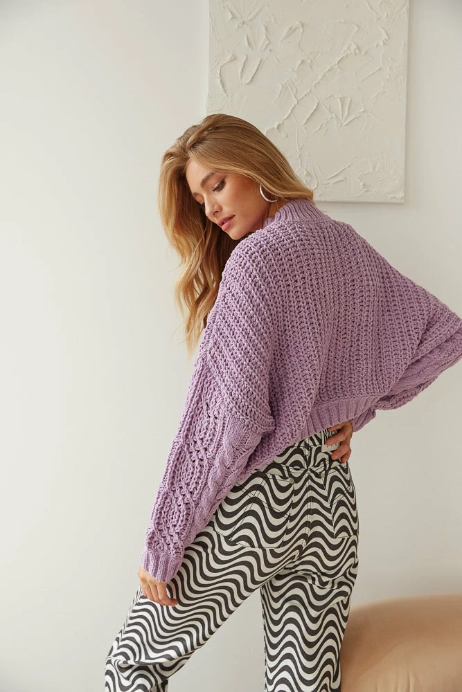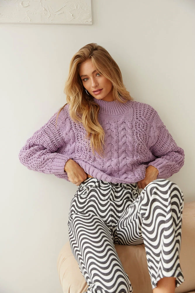 Feeling bold? Layer on the Montgomery Cable Knit Sweater! Featuring a crew neckline and an ultra soft chunky cable knit design. Available in blue and purple. Pair with the Ramona Wavy Straight Leg Jeans for a bold final touch!