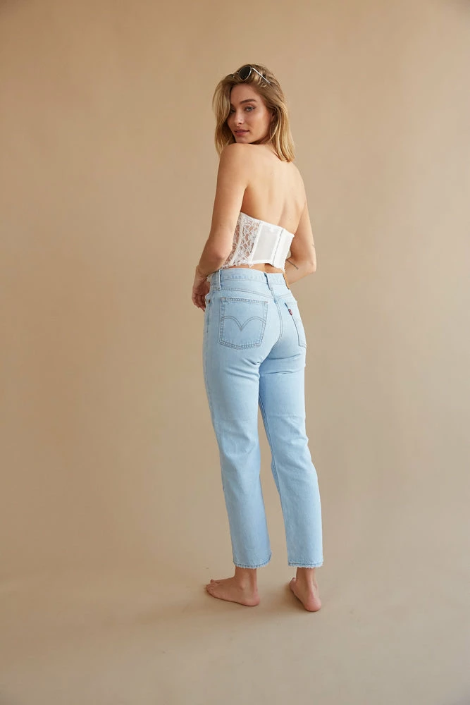 Everyone needs a pair of these jeans in their closet! The Levi’s Wedgie Straight Jeans are the perfect staple featuring a high rise fit, distressing at the knee, a classic button fly, and a straight leg silhouette. Top it off with our Field of Dreams Lace Bustier for a casual summer vibe!