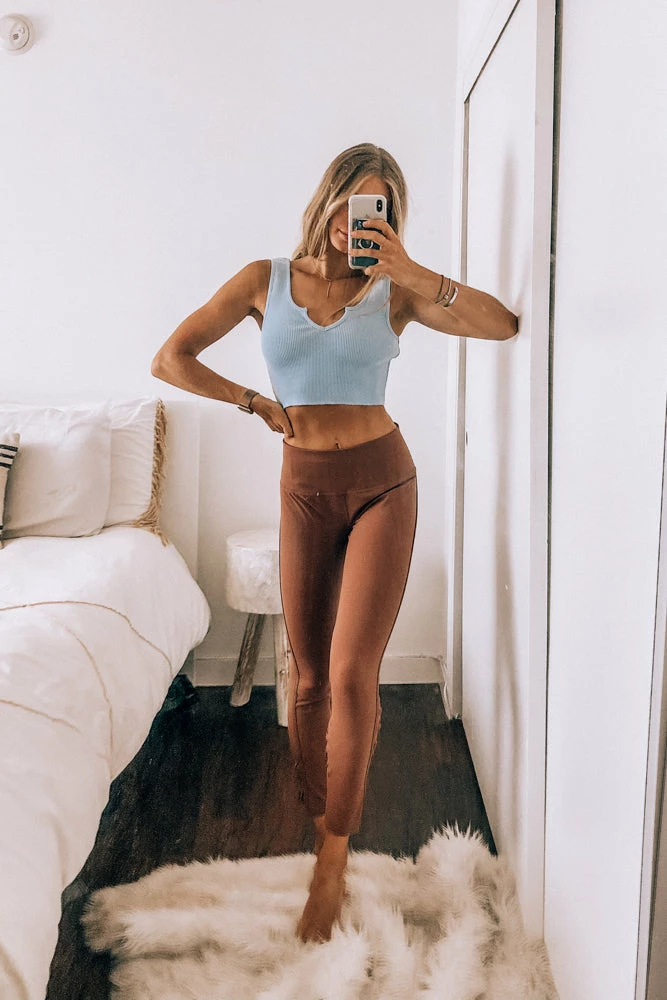 The Revelation Leggings from Free People are quick-dry leggings with a moisture-wicking finish to keep you cool throughout your workout. Beautiful macrame cut-outs at the calf. Available in berry brown. Pair with our Bay City Ribbed Tank to complete this athleisure look!