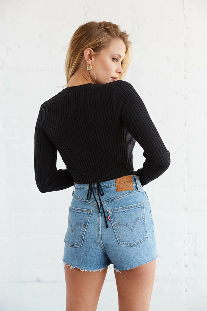 Hey babe, meet the Gigi Tie Sweater Crop Top. Featuring a fitted silhouette, a soft ribbed knit design, and an adjustable wrap tie detail around the waist! Available in black and white. Pair with our Penelope Floral Mini Skirt for a flirty weekend vibe!Â