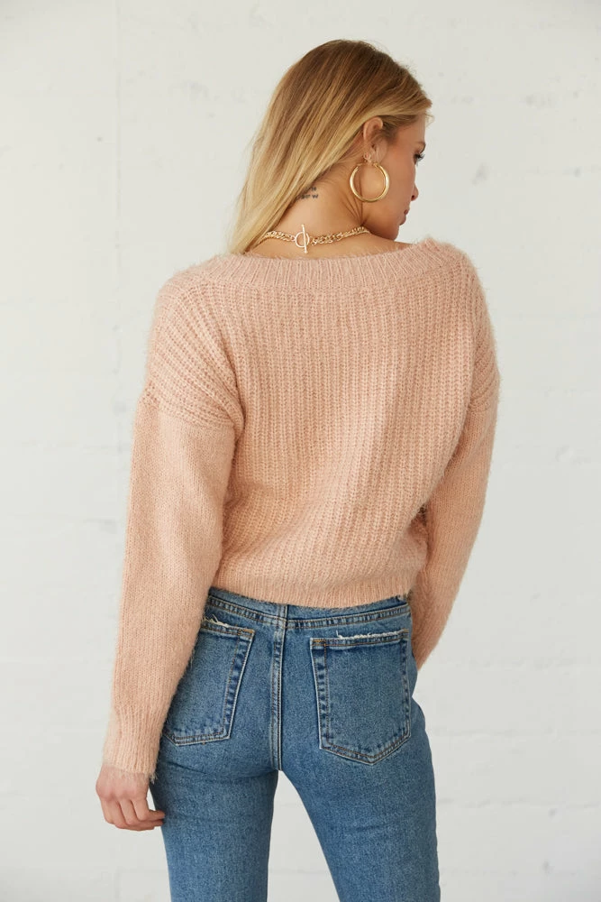 So comfy and warm in the Millie Crop Fuzzy Knit Sweater. Complete with a cropped silhouette, a V neckline, and a slouchy relaxed fit. This is the perfect everyday look! Available in pink. Style with the Lilah High Rise Distressed Straight Jeans and you’ll be all set!