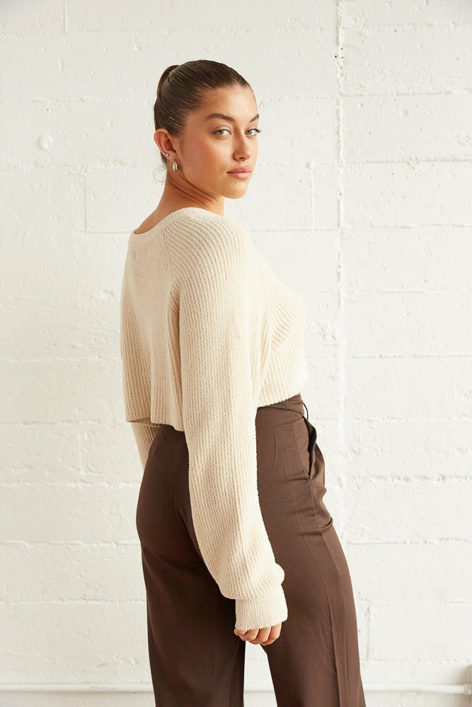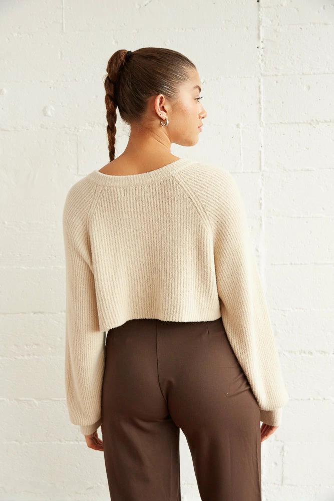 Fall in love with the Sky Crop Knit Sweater! Featuring a notch v neckline, dropped sleeves for a relaxed fit, and an ultra soft ribbed knit design. Available in cream and blue. Pair with a cute skirt for a flirty final touch!