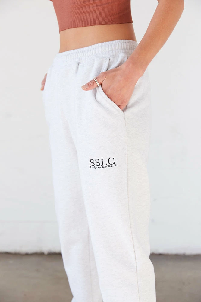 Look no further babes, the perfect sweatpants DO exist. Meet our Malibu Lightweight Sweatpants from Sunday Skin. Featuring a relaxed high rise fit, an inner adjustable drawstring tie, and a super soft design. Topped off with a beautiful “Sunday Skin Leisure Club” black embroidered logo. Available in cloud grey. Style with the Ryan Ribbed Tank for an effortless everyday look.Â