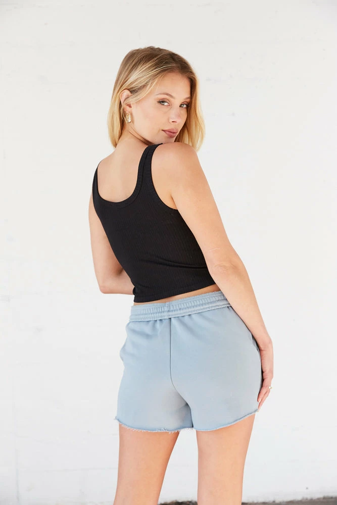 Hey cool-girl, this one’s for you! The Newport Bermuda Shorts from Sunday Skin are everything! Featuring a relaxed high rise fit, an inner adjustable drawstring tie, and a lightweight super soft design. Topped off with a beautiful “Sunday Skin Leisure Club” black embroidered logo. Available in cloud blue. Style these sweatshorts with our Nicole Ribbed Tank and you’ll be set for your next weekend adventure!Â