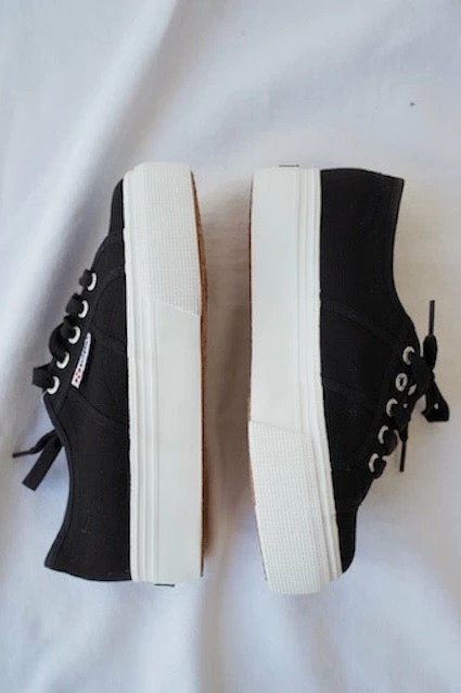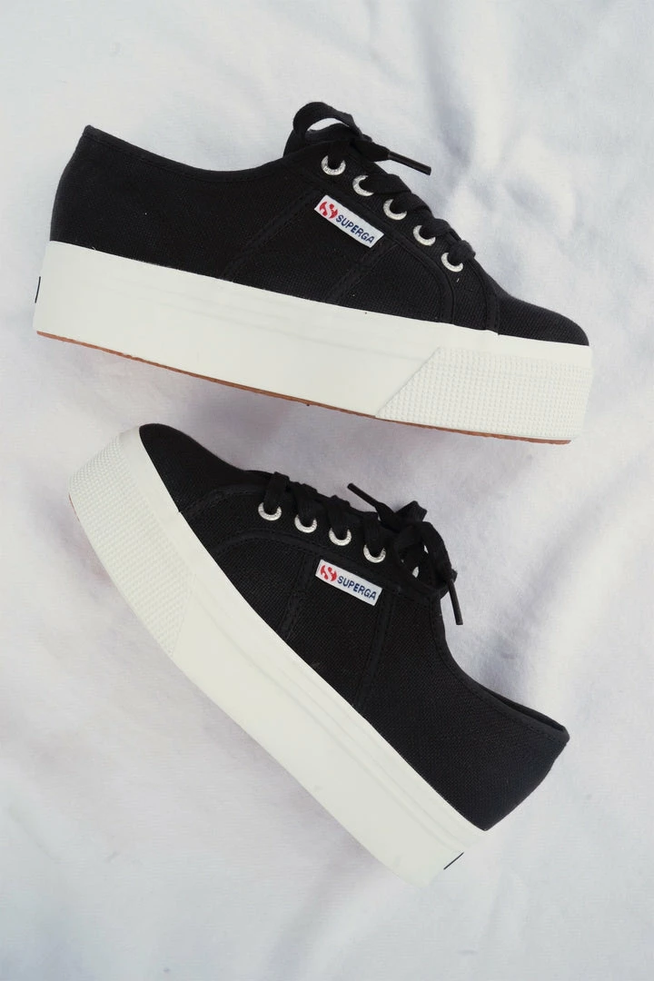 Superga has got you covered on fashion-forward, everyday footwear. This classic kick packs fashionable appeal in a chunky, rubber platform heel! Adorable with fringe denim shorts and a simple tee, these unlined cotton upper platforms are equally as sweet at nighttime with a tight, nautical mini dress. Available in black and white. By Superga.Â