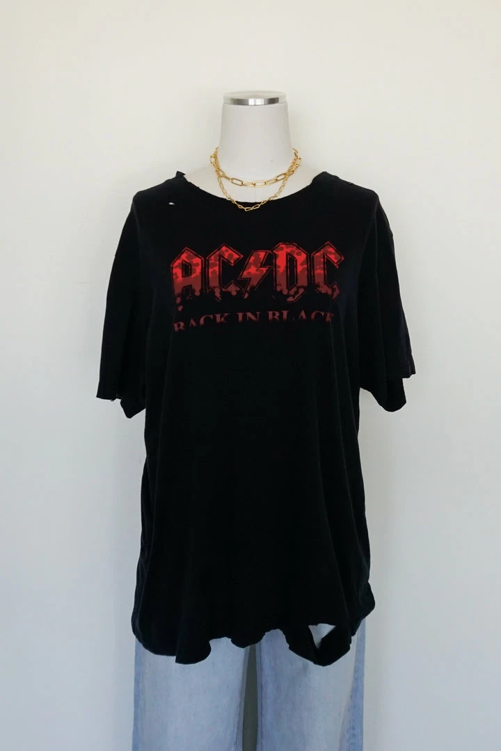 The ACDC Back In Black Band Tee is an absolute gem! This oversized t-shirt features a boxy silhouette and a faded graphic at front. Available in faded black.