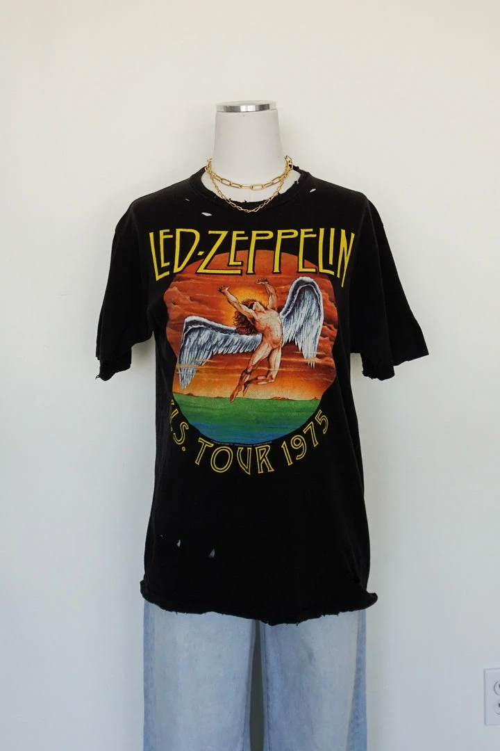 The Led Zeppelin 1975 Tour Tee is an absolute gem! This oversized t-shirt features a boxy silhouette and faded graphics at the front. Available in faded navy black.